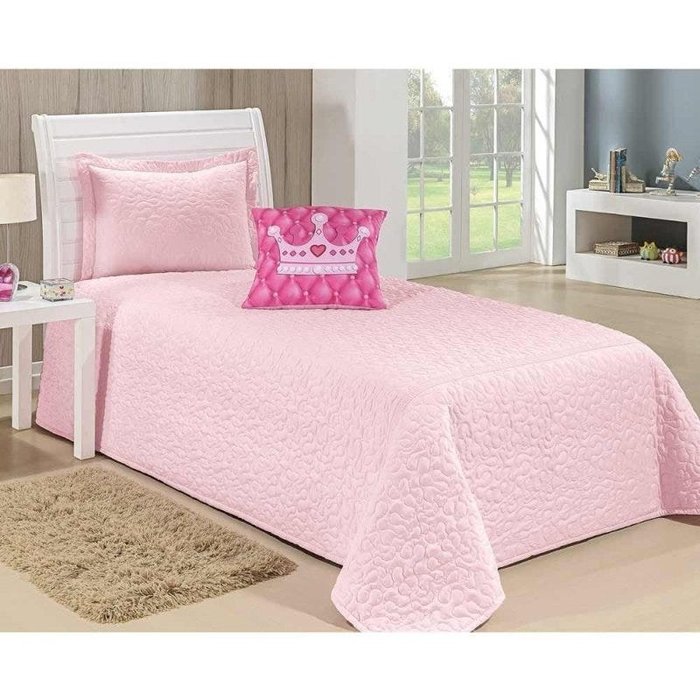 Colcha Solteiro Print 03 Peças - Acompanha Almofada - Rosa