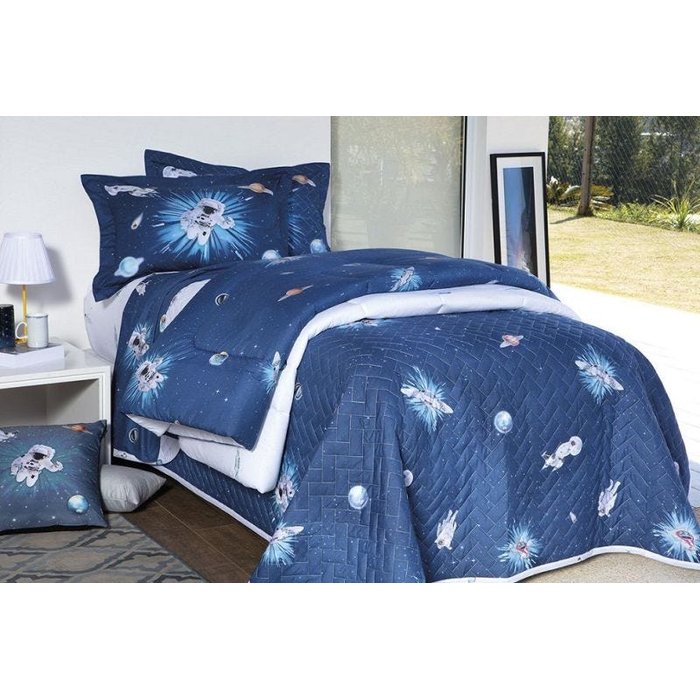 Colcha Solteiro Sleep Vida Bela 2 Pc Astronauta Kacyumara