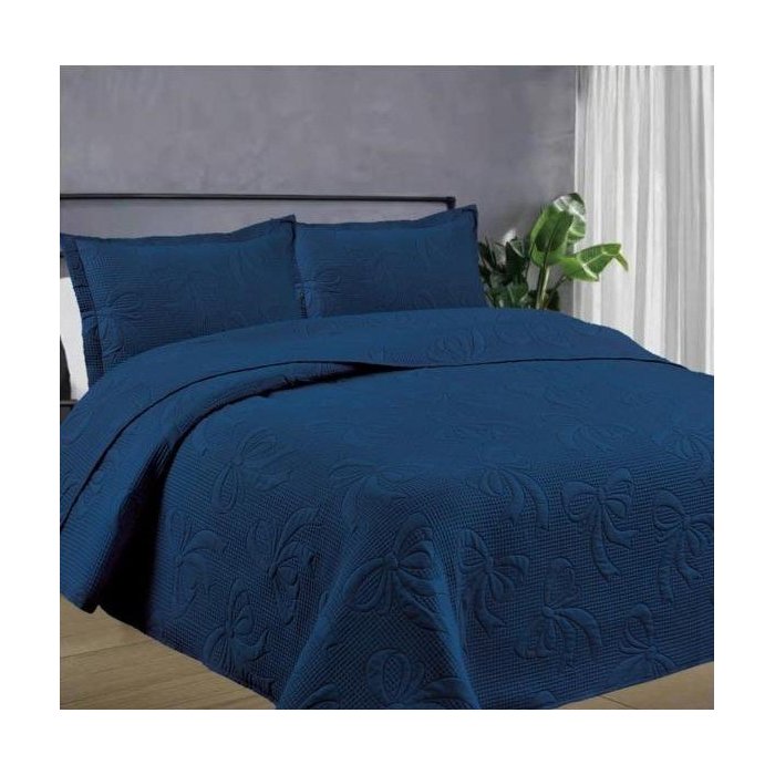 COLCHA SUPER KING COBRELEITO KIT 3 PEÇAS BOUTI ULTRASSONICA LAÇO HABITAT AZUL MARINHO