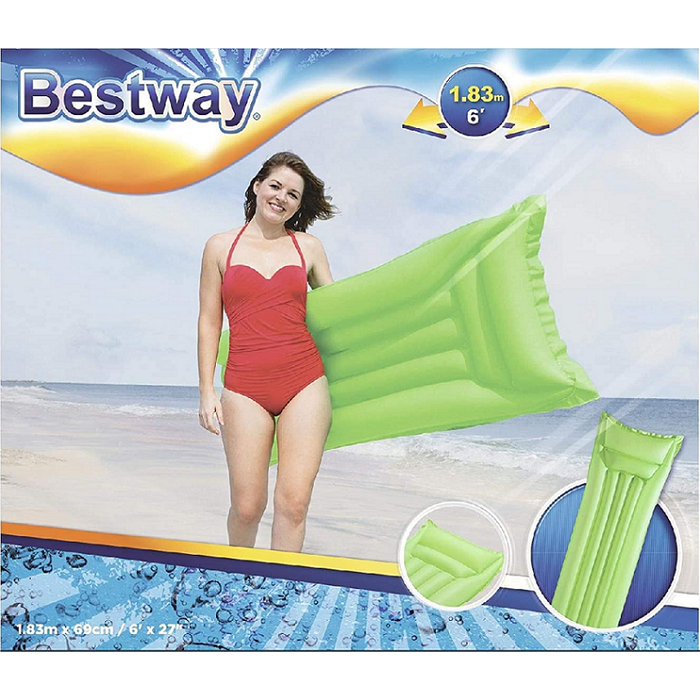 O colchão bronzeador da Bestway é o modelo ideal para quem quer curtir aquela piscina de forma confortável e segura. Ele é um dos infláveis mais vendidos na categoria piscina e lazer. Sua estrutura, foi elaborada para transmitir conforto e segurança para que você possa curtir aquele momento de descontração da melhor forma. O colchão bronzeador é fabricado em vinil super resistente, acompanha válvula de segurança com 2 câmaras de ar e adesivo de reparo incluso. Se utilizado por uma criança. Indicamos a supervisão de um adulto. Informações gerais: • Material: Vinil resistente • Medida: 1,83cm x 69cm (C x L) • Peso: 310g • Indicação: Adulto • Marca: Bestway