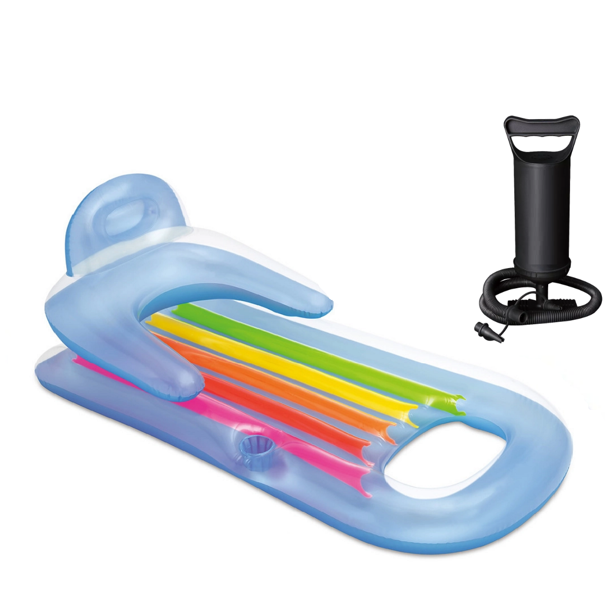 COLCHÃO BRONZEADOR POLTRONA INFLÁVEL P/ PISCINA PORTA COPO AZUL PEROLIZADO + BOMBA DE AR MANUALChegou a sua hora de aproveitar a piscina com este lindo colchão / poltrona inflável para piscina com porta copo.Ela é ideal para quem quer descansar, pegar um bronzeado ou tomar um drink se refrescando na piscinaEle possui apoio para braço e cabeça, suporte para copo para você tomar seu drink preferido e se refrescar com toda a comodidade tudo isso com 2 válvulas de segurançaÉ um produto original Intex com fabricação recente, qualidade com garantia de segurança a você, seus amigos e familiares nos seus momentos de lazer.Disponível na cor azul.Tamanho: 1.60m x 85cmINDICAÇÕES DO FABRICANTE- Uso a partir de 14 anos- Peso máximo recomendado 100 KgCOMPOSIÇÃO- Vinil resistente pré-testado- PVC colorido transparente com vigas coloridasCONTÉM- 1 Colchão Poltrona inflável para bronzeamento fabricado em vinyl superior de 0.30mm de espessura- Bomba de ar manual- 1 Remendo de reparação incluso