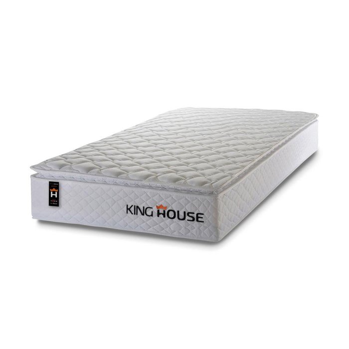 Feito com os mais nobres materiais em sua composição, ele conta com espuma D26. O colchão King House acomoda melhor o contorno do corpo, dispondo de forma correta quadris e ombros, expulsando as dores e problemas de coluna.