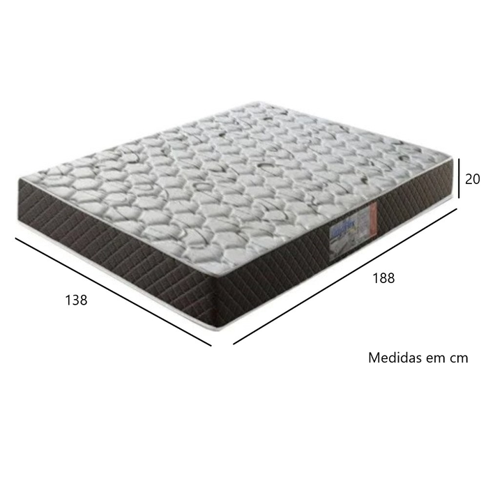 - Altura Colchão: 20,0 cm- Largura Colchão: 138,0 cm- Comprimento Colchão: 188,00 cm- Garantia: 03 meses