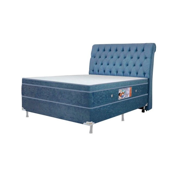Colchão Magnético Infravermelho Antigermes Linha Luxo Casal Azul + Box + Cabeceira
