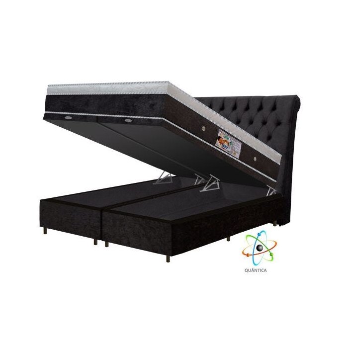 Colchão Magnético Infravermelho Antigermes Linha Luxo Quântico King Cinza + Box Baú