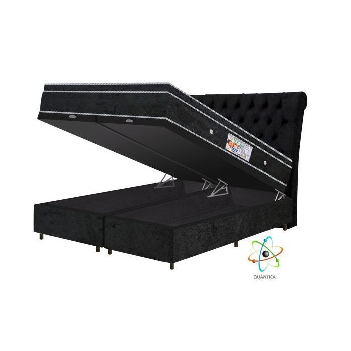 Colchão Magnético Infravermelho Antigermes Linha Luxo Quântico Queen Preto + Box Baú + Cabeceira