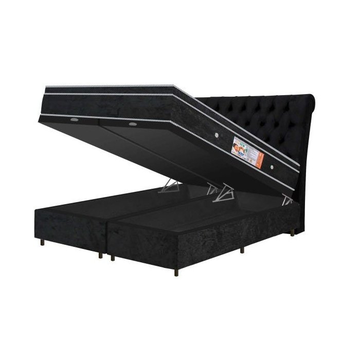 Colchão Magnético Infravermelho Antigermes Linha Luxo Queen Preto + Box Baú + Cabeceira