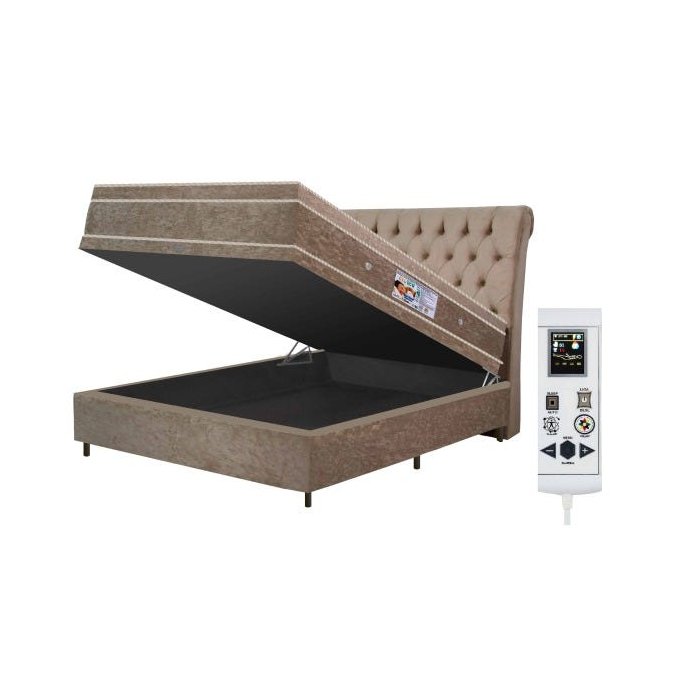 Colchão Magnético Infravermelho Massageador Bioquântico Cromoterapia Casal Bege + Box Baú