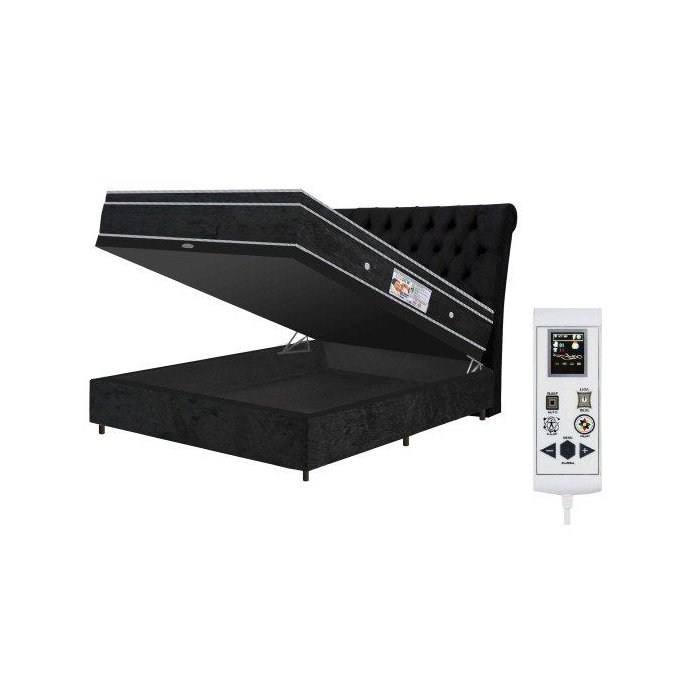 Colchão Magnético Infravermelho Massageador Bioquântico Cromoterapia Casal Preto + Box Baú + Cabecei