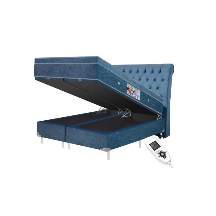Colchão Magnético Infravermelho Massageador Bioquântico King Azul + Box Baú + Cabeceira