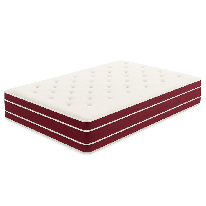 Colchão de solteiro com design sofisticado, lateral em suede vinho e sistema de molas ensacadas individuais, que proporcionam conforto superior e independência de movimentos. Ideal para quem busca noites de sono tranquilas com estilo e durabilidade.