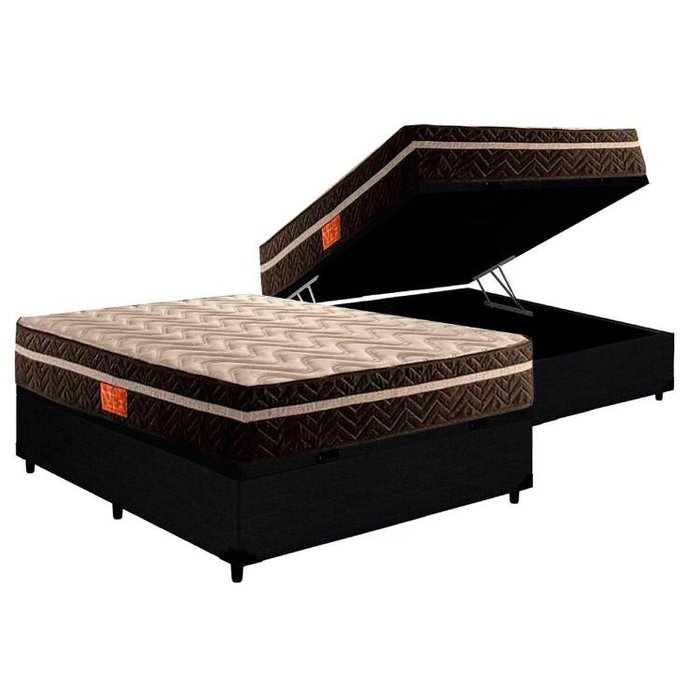 Conjunto Baú - Colchão Paropas Espuma D45 Conforto Mega Firme Black Duoface + Cama Box Baú Universal CRC Linhão Black - Casal - 138x188 Abaixo segue os produtos do KIT: