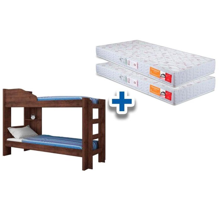 Abaixo segue os produtos do KIT: Colchão Pérola Polar (2Un) + Beliche Indy Café