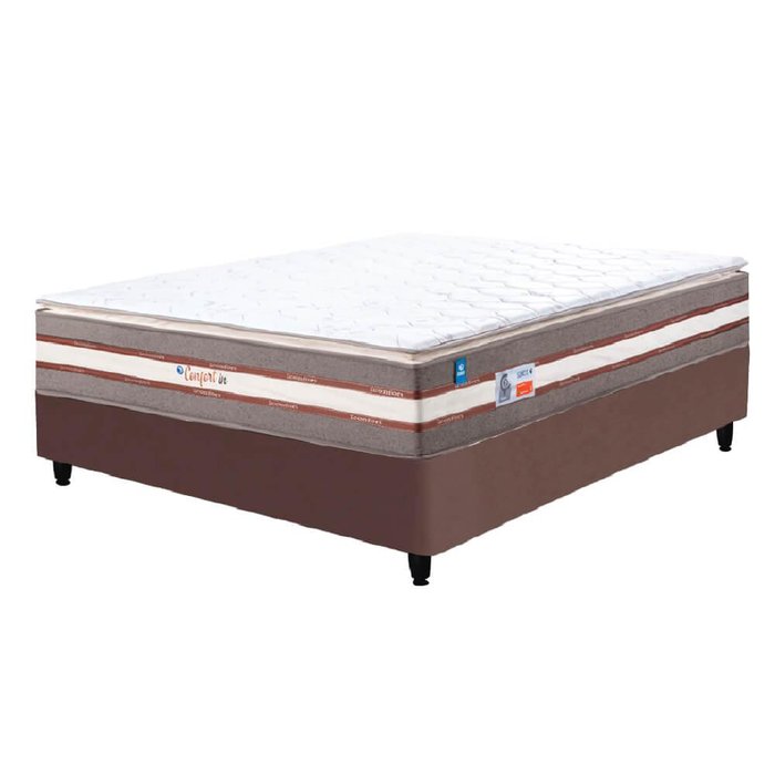 Colchão Queen SONOS COLCHOES Confort In + Box Tozatto Casal 158cm com Molas Ensacadas - Marrom