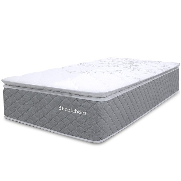 Colchão Solteiro Bf Colchoes Molas Ensacadas com Pillow Top Extra Conforto 88x188x38cm Bf Cinza