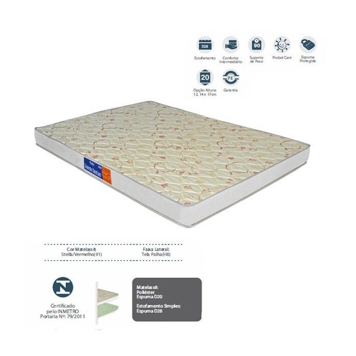 Colchão Solteiro Probel Guarda Costas D28 Liso 188x88 Padão