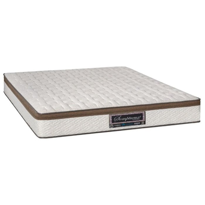 O Colchão Somptueux conta com tecido malha exclusivo dando um toque suave às suas noites de sono. Extremamente macio, leva uma camada extra de conforto para você dormir bem. Com borda de polipropileno expandido esse material possui memória, ou seja, quando comprimido e liberado, este retorna a posição inicial, sem deixar marcas ou deformações, tratando-se portanto de materiais mais resistentes. Com a tecnologia Superlastic Spring, o colchão oferece molejo com suas molas contínuas entrelaçadas e helicoidais no sentido horizontal, garantindo melhor distribuição do peso pela cama.