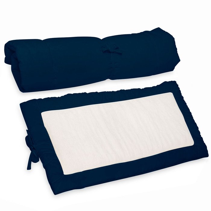 É considerado 2 em 1 pois pode ser utilizado como acolchoado pillow top para colchão de berço e colchonete portátil para passeios;
