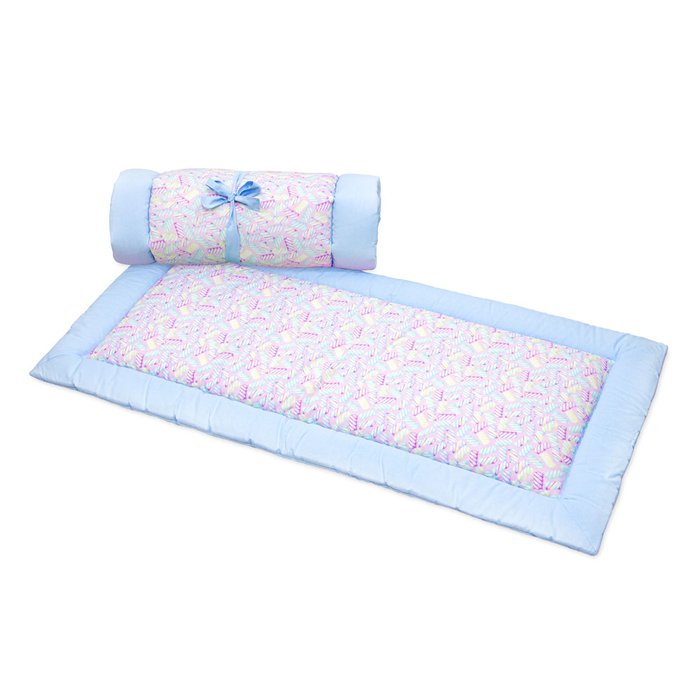 - É considerado 2 em 1 pois pode ser utilizado como acolchoado pillow top para colchão de berço e colchonete portátil para passeios;