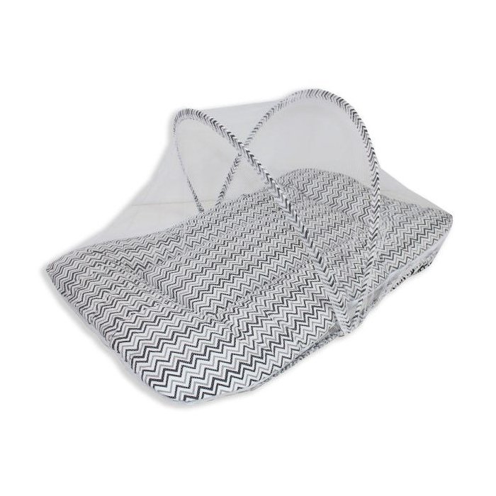 Colchonete Portátil Para Bebê com Mosquiteiro - Chevron Preto