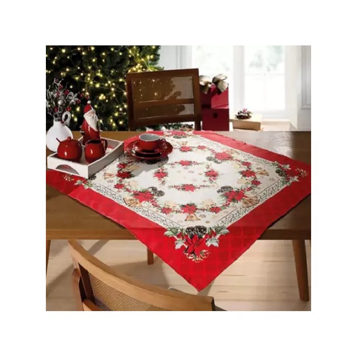 Toalha de mesa, 50% algodão e 50% poliéster, com estampa centralizada e no tamanho 78cm X 78cm. Ideal para centro de mesa, forrar bancada, suporte de buffet, entre outros.