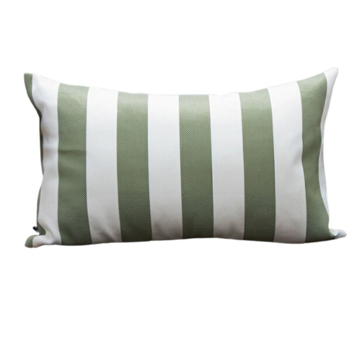 ALMOFADA IMPERMEÁVEL LISTRA VERDE RETANGULAR Desenvolvida para oferecer máxima performance em áreas externas. As almofadas possuem tecidos com alta proteção UV, resistência ao desbotamento e secagem rápida, ele une o toque suave das fibras naturais à durabilidade das sintéticas. Hidrorepelente e fácil de limpar, suas cores vibrantes resistem ao sol e à umidade.