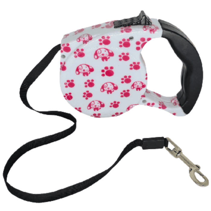 Coleira Guia Retrátil Cachorro 5 M Cães Passeio Sj Guia Retrátil com Estampa Patinhas Rosas