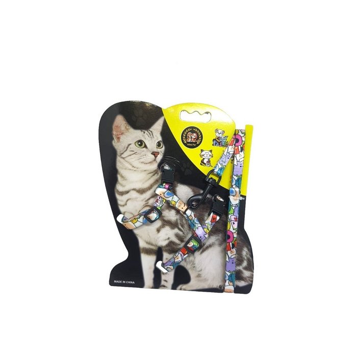 Coleira e Guia Para Gatos, Modelo Fita Cetim Estampado .