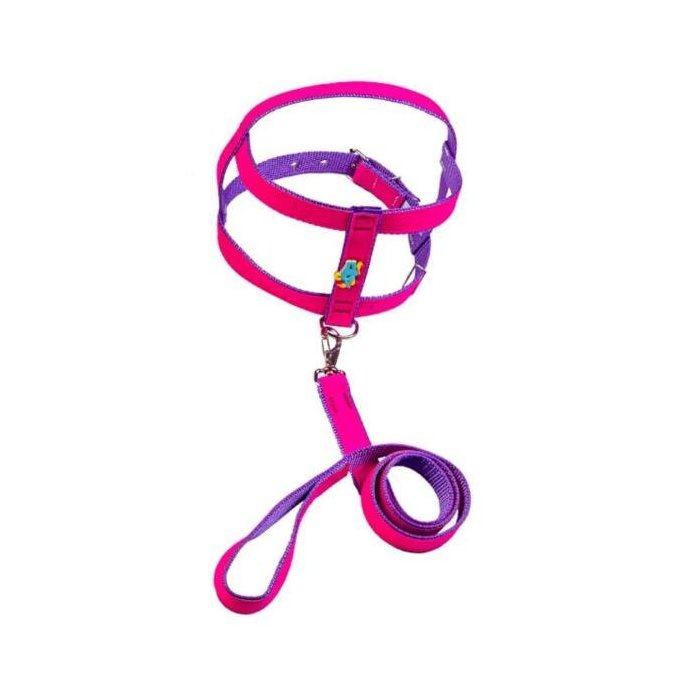 Coleira Peitoral De Camurça 25Mm Com Aplique Rosa