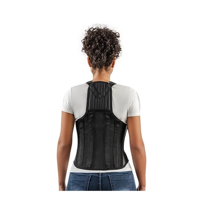 Auxílio no tratamento de patologias da coluna toracolombossacra; Hérnias; Traumatismos; Contraturas; Artroses; Lesão medular; Instabilidades de tronco; Alterações neurológicas; Espondilólises e espondilolisteses; Fraturas estáveis ou osteoporóticas; Pós-operatório. - Possui 6 talas de alumínio - Corretor postural integrado - Bolso para ajuste frontal - Tração extra de velcro elástico - Produzido em tecido transpirável - Ajustes dinâmicos e anatômicos - Estabiliza as regiões torácica, lombar e sacral. Altura recomendada do usuário P ? de 1,52 a 1,69m M ? de 1,69 a 1,80m G ? de 1,79 a 1,95m Instruções de Uso Solte os fechos aderentes das faixas elásticas, das tiras do ombro e das abas em neoprene. Vista o produto. Insira as mãos nos bolsos de ajuste, de forma que facilite o fechamento, transpassando as mãos sobre o abdômen. Ajuste as duas faixas elásticas externas. Corrija a postura, posicionando os ombros para trás. Ajuste as tiras dos ombros e fixe-as nos fechos aderentes.
