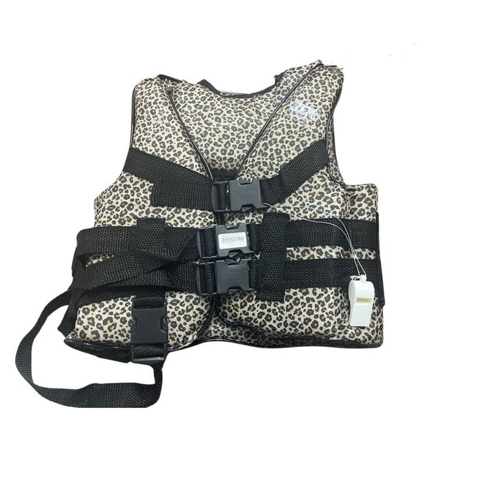 Colete Infantil Auxilia na Flutuação Oncinha Não FuraEdição Limitada Colete Salva Vida Aux. Flutuação Infantil ideal para auxiliar a criança durante uso de piscinas em seu nadosEncosto p/ cabeça e apitoCaracterísticas:- Confeccionados com tecido de nylon 70/110.- Material flutuante de poletileno expandido de células fechadas.- Possui fitas com bitolas de 25 mm super resistente e cinto entre as pernas.- Fecho em sistema tic-tac.Observação: Nossos coletes atendem a rigorosos padrões de fabricação e possuem a margem de segurança de 10% a mais além do peso desejado.