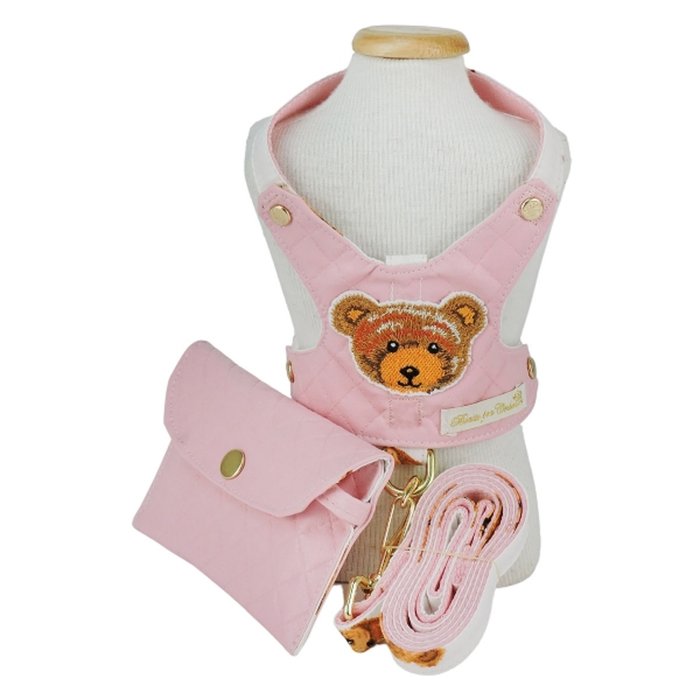 COLETE PEITORAL COM GUIA URSO ROSA - BONITO PRA CACHORRO - GG