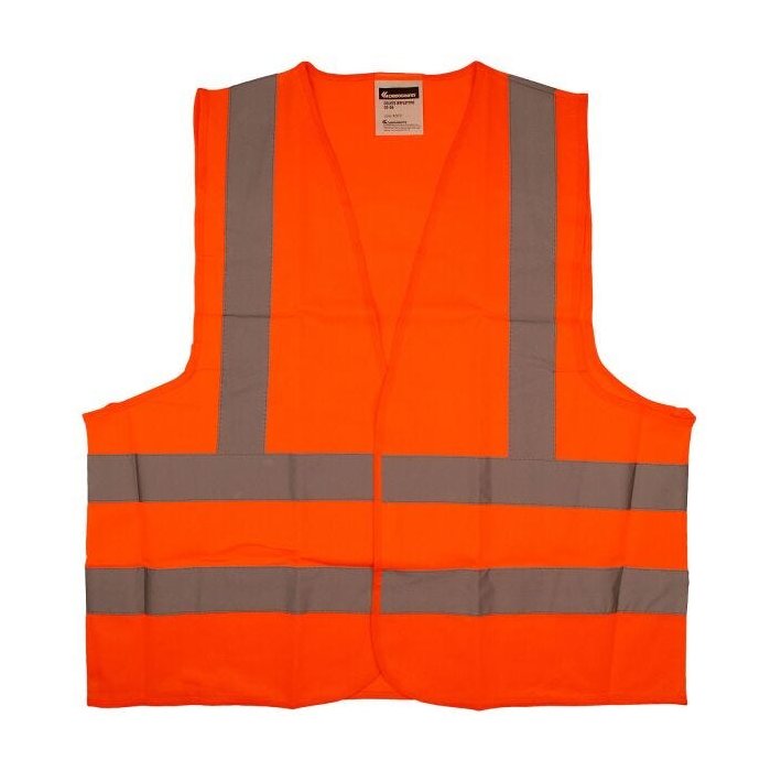 Coletes Refletivos CG 06 Coletes fabricados com fita refletiva de alta visibilidade. Fechamento em velcro. Disponíveis nas cores laranja ou verde limão, com refletivo prata. *IMAGEM MERAMENTE ILUSTRATIVA*