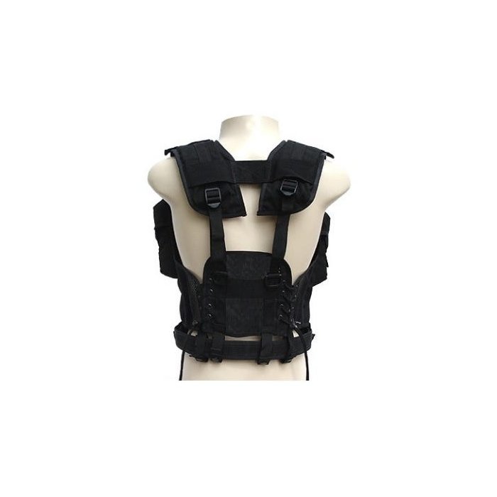 2 alças nos ombros para acoplagem de acessórios, como facas, lanternas, celulares...;