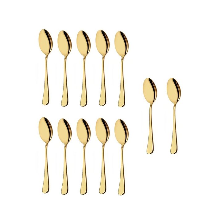 Colher de cafe dourado em aço inox. As colheres da CASACHA sao produzidos em aço inoxidavel, altamente duraveis e acabamento impecavel.