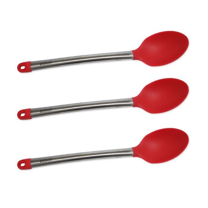 Colher de Silicone Cabo Inox 24 cm Vermelha Arroz Farofa Molhos Kit 3 Vermelha