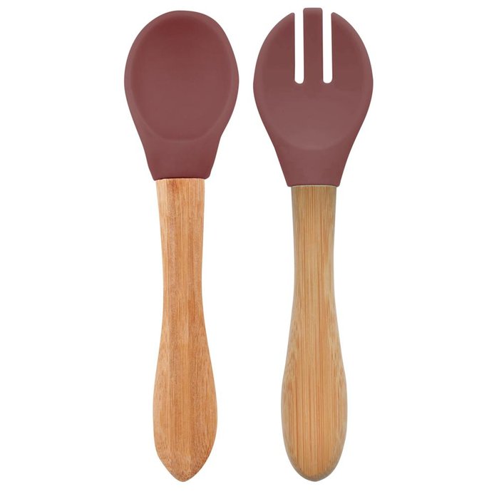 Colher e Garfo Silicone e Bambu Dig In Velvet Rose - Minikoioi