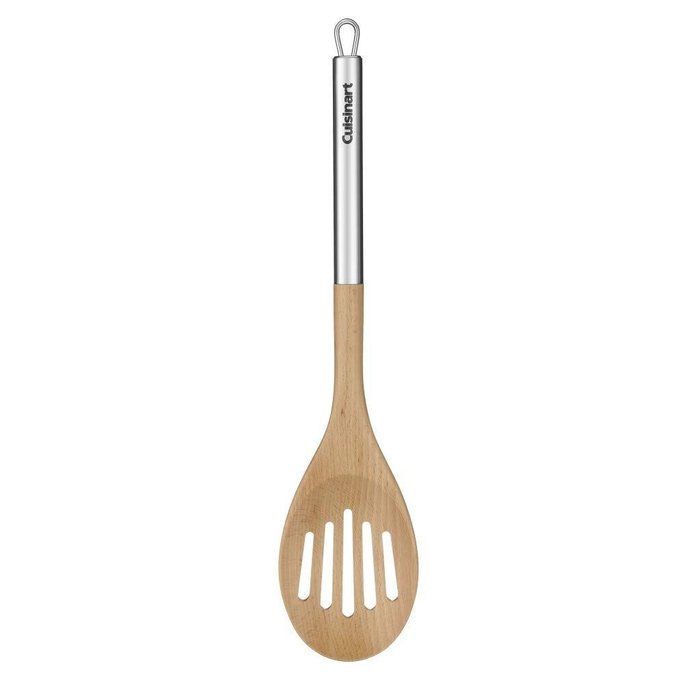A colher perfurada Cuisinart é uma ferramenta elegante e funcional, ideal para cozinhar com panelas antiaderentes. Feita em madeira de faia com acabamento em óleo natural, oferece durabilidade e proteção para seus utensílios de cozinha.