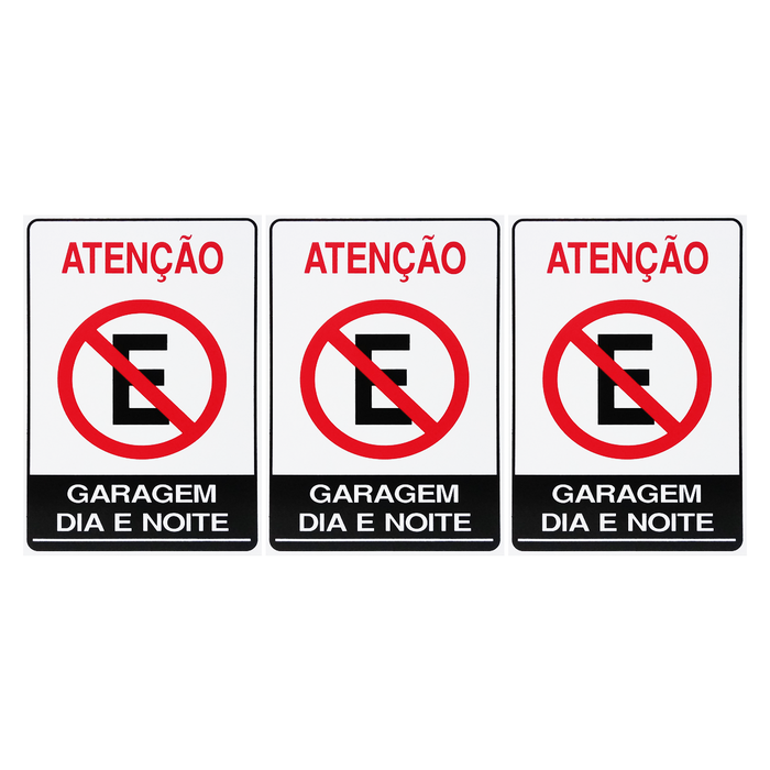 Combo 10 Placas De Sinalização Atenção Proibido Estacionar Garagem Dia E Noite 20x30 Acesso - P-4/1