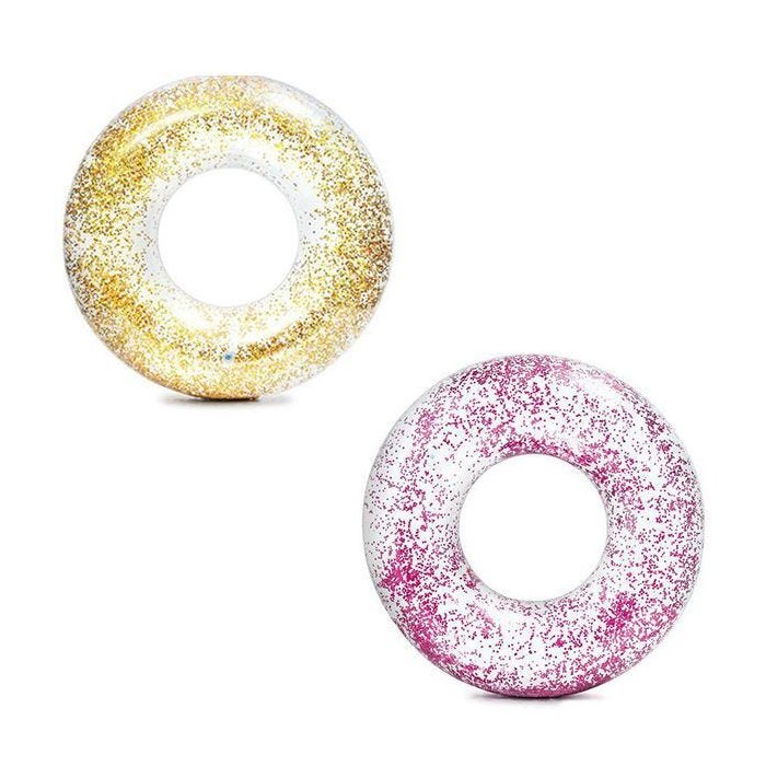 Combo 2 Boias infláveis para piscina modelo redonda tube glitter intex 1,19m 1 pink e 1 dourada