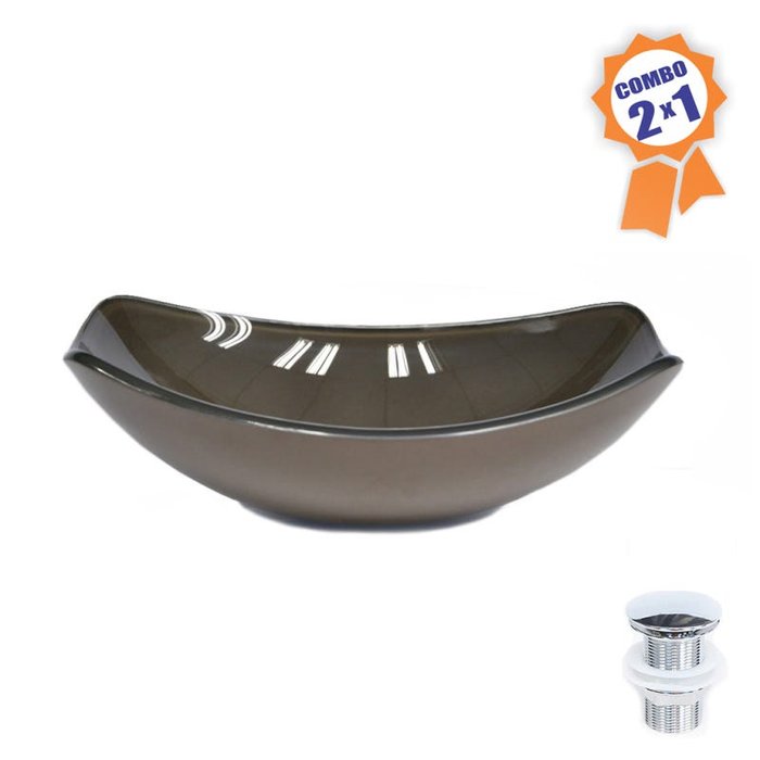Combo 2 em 1 - Cuba de Vidro Oval Chanfrada 51cm Verona + Válvula Beirute Marrom