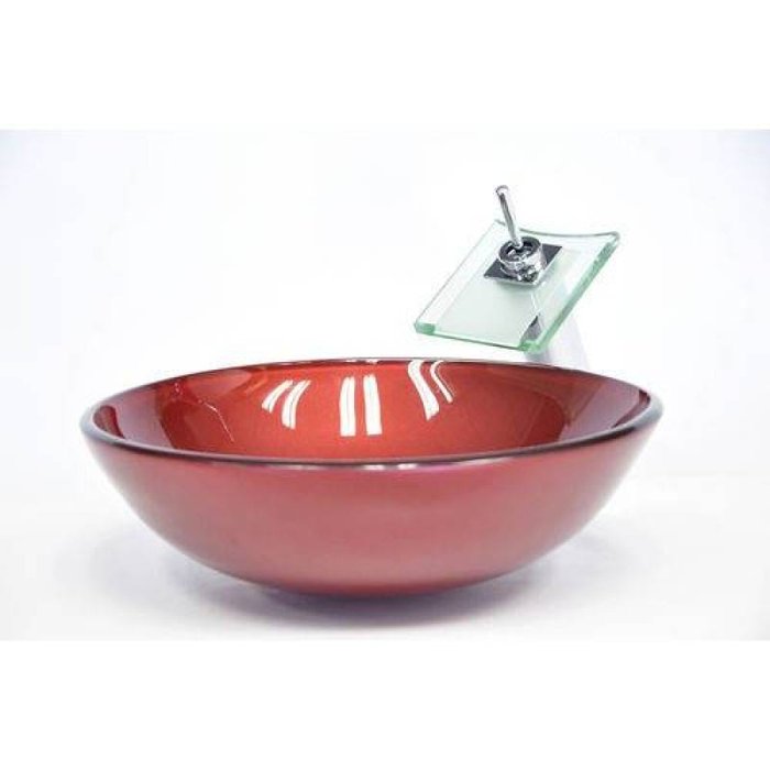 Combo 2 em 1 - Cuba de Vidro Redonda 35cm Marsala + Válvula Beirute Vermelho Cereja