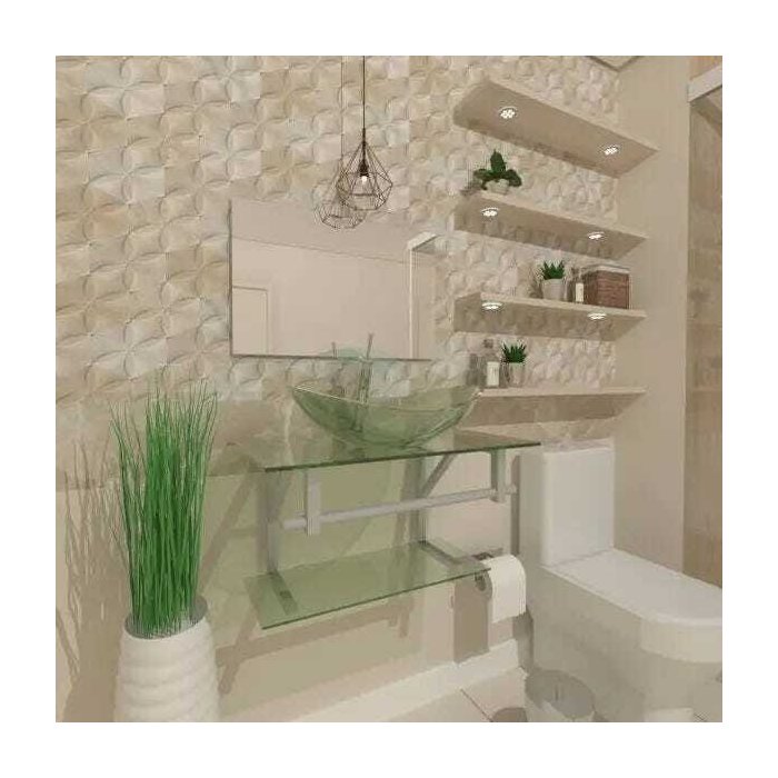 Itens Inclusos: Gabinete de Vidro 60cm para banheiro composto de bancada de vidro, cuba de vidro, prateleira da bancada, espelheira, válvula clic, estrutura de metalon, porta toalha de metalon e kit parafusos completo para instalação.