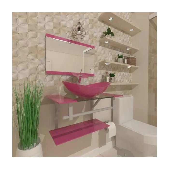 Itens Inclusos: Gabinete de Vidro 60cm para banheiro composto de bancada de vidro, cuba de vidro, prateleira da bancada, espelheira, válvula clic, estrutura de metalon, porta toalha de metalon e kit parafusos completo para instalação.