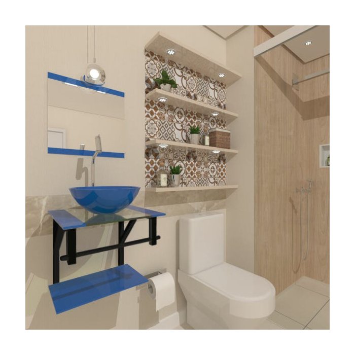 COMBO 2X1 GABINETE DE VIDRO CROÁCIA 40CM AP AZUL + TORNEIRA ALGARVE EK
