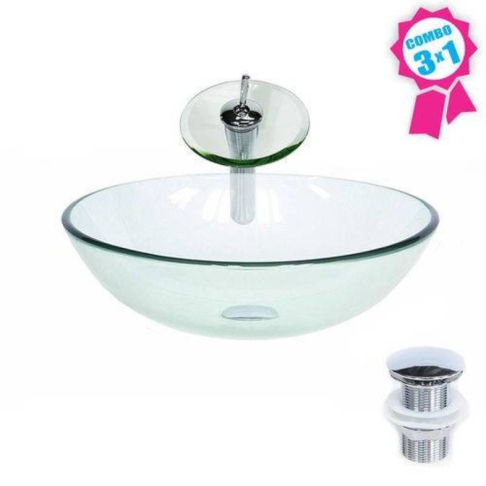 Itens inclusos: Torneira Monocomando de Vidro Redondo + Kits de peças para instalação