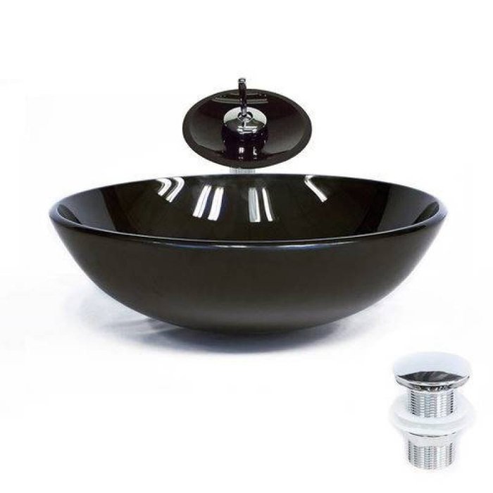 Combo 3 em 1 - Cuba de Vidro Redonda 35cm Marsala + Torneira Ibiza + Válvula Beirute Preto
