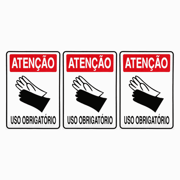 Combo 3 Placas De Sinalização Atenção Luva Uso Obrigatório 20x30 Acesso - S-206 F9e