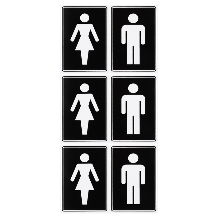 Neste Kit contém 3 unidades de placas com a escrita "Banheiro Masculino / Feminino".