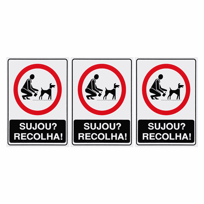 Neste Kit contém 3 unidades de placas com a escrita "Sujou Recolha".